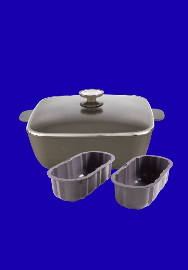 CACEROLA CUADRADA ideal para la familia: por su efecto horno en la cocción permite hacer desde panificados, carnes y verduras hasta guisados. También viene en su versión de combo con dos budineras para preparaciones dulces y hasta saladas.
